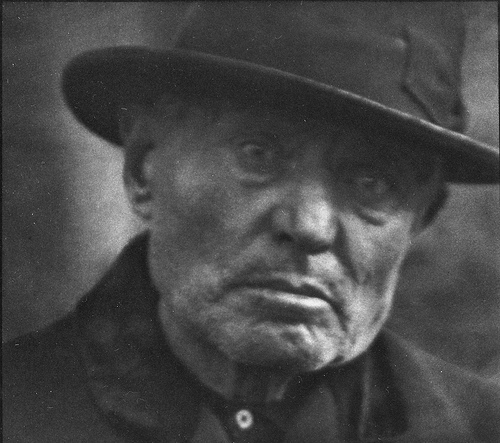 This one is one you shouldn’t miss [Man, Five Points Square, New York, 1916]. It was done very early with a box camera that had a false lens on the front and the real lens on the side. It’s an invasive picture. The photographer’s looking at someone’s private anguish. And obviously many of the people in these images are poor–that’s another inegalitarianism.