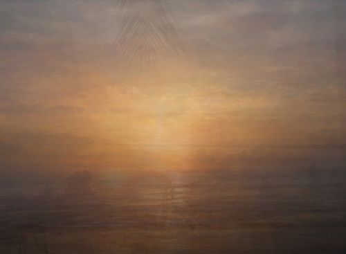 Collage artist Alexis Anne Mackenzie pushes her artistic practice to greater abstraction and complexity in relation to the work she presented less than a year ago. Comprised of small pieces, several of them diptychs, Mackenzie methodically cuts one or two images into strips — curved arches, straight verticals, and wavy verticals — of roughly the same thickness and adheres these over another image at regular intervals that are the thickness of the strips. Thus, the images remain visible, albeit now variably stuttered, and with varying degrees of recognizability. For the diptychs, the same base image is used. One piece features a set of strips over the base. For the other she uses those that are left, such that the pieces strongly relate but also demonstrate how, given different sets of information from the same pictures, things can look vastly different.